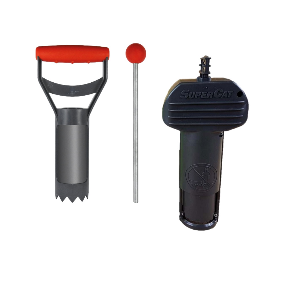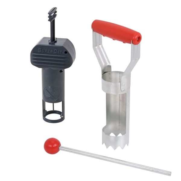 <li>Bruk hulltakingssettet ved å vri den og lag et fint loddrett hull på 6 cm. i diameter ned i gangen, grav ut ekstra 2 cm. ned i bunnen av gangen. Ta forsiktig ut den løse jorda.</li>