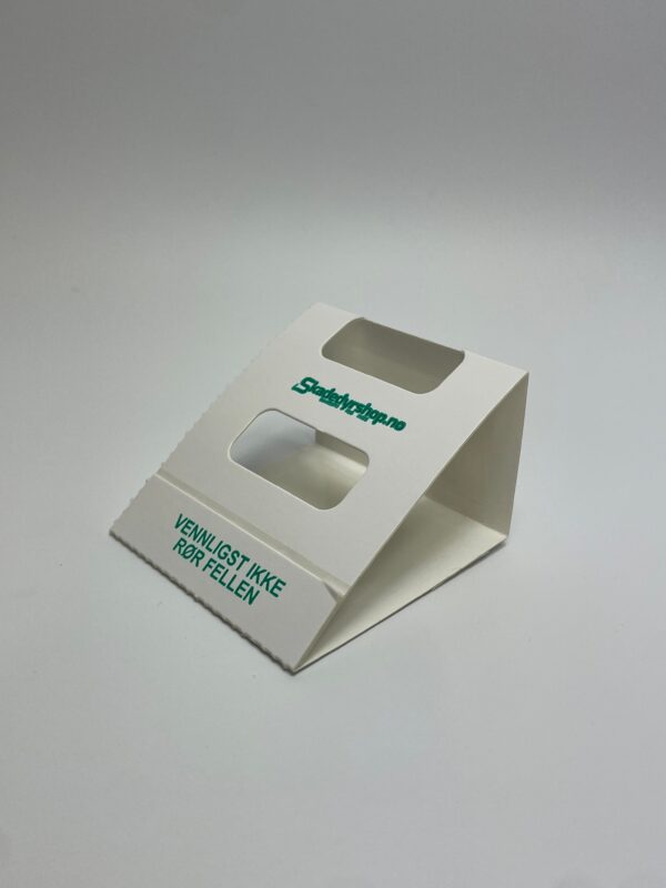 4. Nå kan du ta av dekkepapiret. Vær forsiktig, limet er svært klissete. Brett fellen som beskrevet i punkt tre.